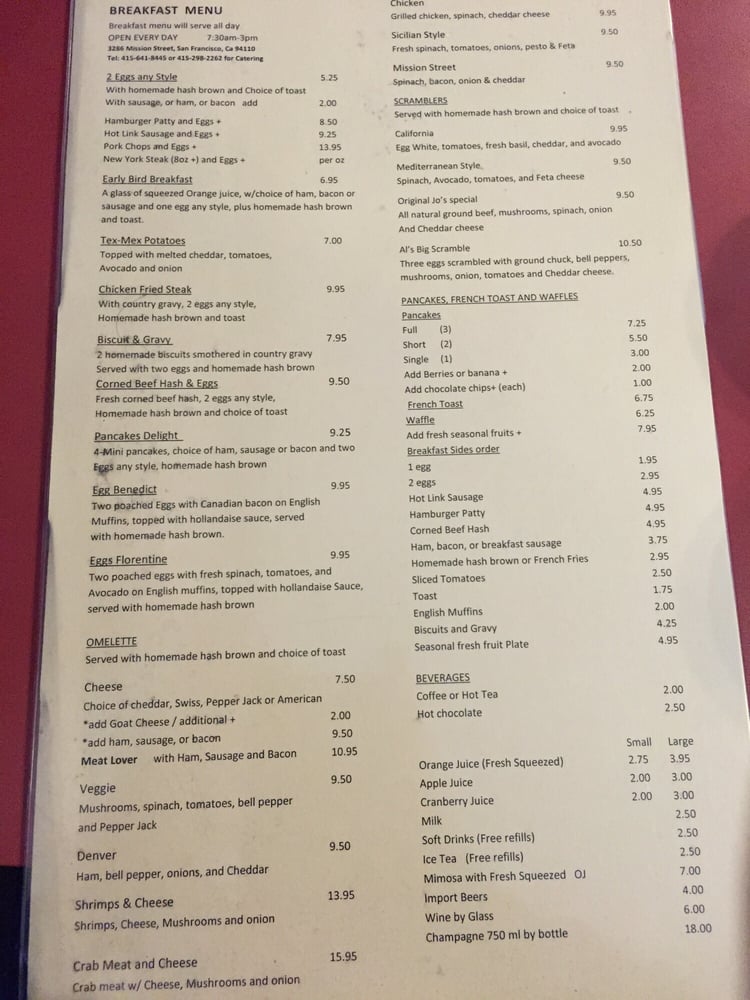 Welcome to Al's Super Cafe, a beloved gem located at 3286 Mission St, San Francisco. This diner, cherished for its old-school vibe and welcoming atmosphere, serves up a delectable menu that celebrates classic American breakfast and brunch fare.